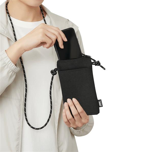 Torba na ramię na telefon URBAN. Uniwersalna torba odpowiednia dla smartfonów. Ma główną komorę zapinaną na zamek błyskawiczny oraz 1 kieszeń z przodu. Wykonana jest z poliestru pochodzącego z recyklingu (rPET). Ma regulowany pasek na ramię (długość ok. 140 cm).
