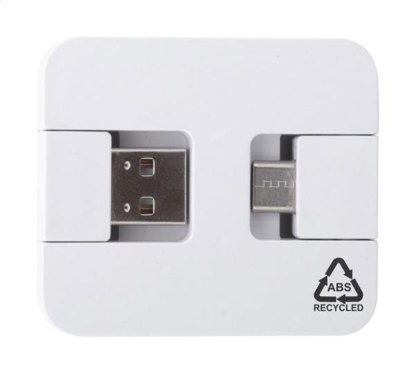 Hub USB z tworzywa ABS pochodzącego z recyklingu, z 2 portami USB i 2 portami USB-C. Ze składanymi złączami USB i USB-C. USB 2.0.
