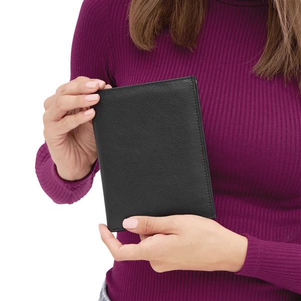 Etui na paszport VACATION. 9 przegródek wielkości karty kredytowej oraz duża kieszonka na paszport. Materiał: Skóra Kolor: czarny Tagi: Portmonetki,portfele,akcesoria podróżne