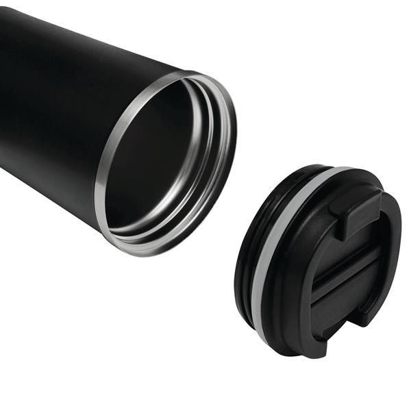 Butelka termiczna VELOMUG z podwójną izolacją. Wewnątrz wykonana jest z recyklingowanej stali nierdzewnej, a na zewnątrz ze stali nierdzewnej. Ma bezpieczną zakrętkę w dopasowanym kolorze, silikonowy pierścień uszczelniający i wbudowany otwór do picia. Posiada powlekane dno zapewniające dobrą przyczepność i pojemność ok. 350 ml. Utrzymuje ciepło przez ok. 8 godzin, a zimno do 12. Zapakowana jest w pudełko.