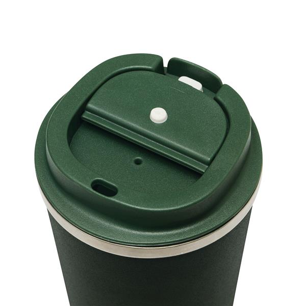 Butelka termiczna VELOMUG z podwójną izolacją. Wewnątrz wykonana jest z recyklingowanej stali nierdzewnej, a na zewnątrz ze stali nierdzewnej. Ma bezpieczną zakrętkę w dopasowanym kolorze, silikonowy pierścień uszczelniający i wbudowany otwór do picia. Posiada powlekane dno zapewniające dobrą przyczepność i pojemność ok. 350 ml. Utrzymuje ciepło przez ok. 8 godzin, a zimno do 12. Zapakowana jest w pudełko.