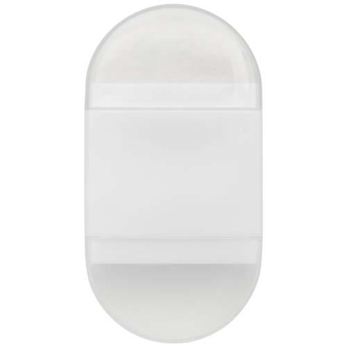 Temperówka z gumką i przezroczystymi zatyczkami po obu stronach. Wymiary: 6,2 x 3,3 x 1,6 cm.
