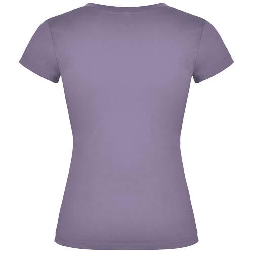 Victoria damska koszulka z krótkim rękawem i dekoltem w serekDamska koszulka z krótkim rękawem z dekoltem w serek i prążkowanymi wykończeniami 1×1. Wąski krój z bocznymi szwami. Usuwalna metka. Materiał: Splot Single Jersey100% Bawełna, 155 g/m2 Kolor: Lawandowy
