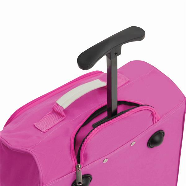 Walizka na kółkach VIENNA, przestronna komora główna zapinana na zamek, kieszeń na zamek z przodu, rączka walizki może być ukryta w całości w oddzielnej przegródce na zamek błyskawiczny, 2 uchwyty do przenoszenia, 2 nóżki z tyłu, ze względu na rozmiar nadaje się do tanich linii lotniczych. Materiał: 600D Poliester Kolor: różowy Tagi: Wózki,walizki,bagaże,akcesoria podróżne