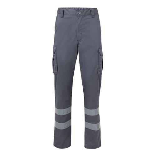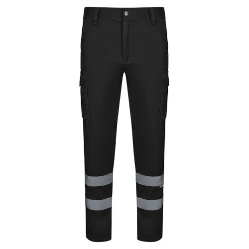 „Spodnie wielokieszeniowe ze stretchem (240g/m2), wykonane z bawełny (46%), EME (38%) i poliestru (16%). Elastyczny pas, odblaskowe paski na dole spodni i sześć kieszeni (2 francuskie, 2 boczne kieszenie mieszkowe i 2 tylne kieszenie mieszkowe). Produkt zgodny z rozporządzeniem UE 2016/425, certyfikowany przez EN17353 i klasę No B2. Size: 34, 36, 38, 40, 42, 44, 46, 48, 50, 52, 54, 56, 58, 60