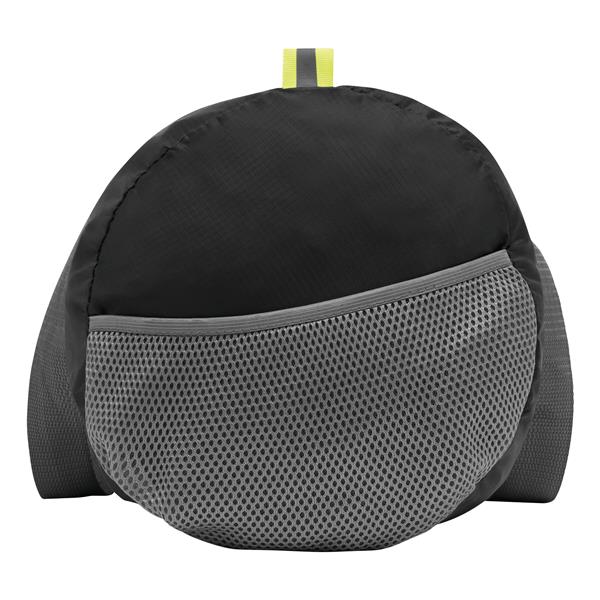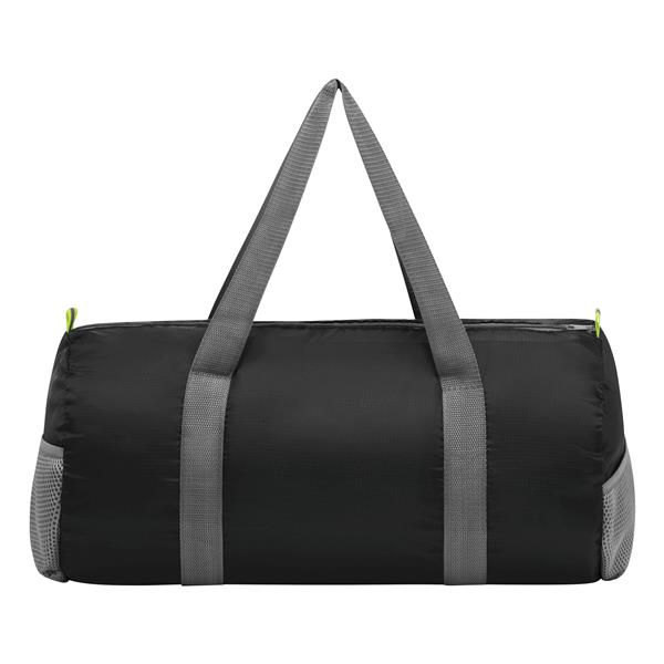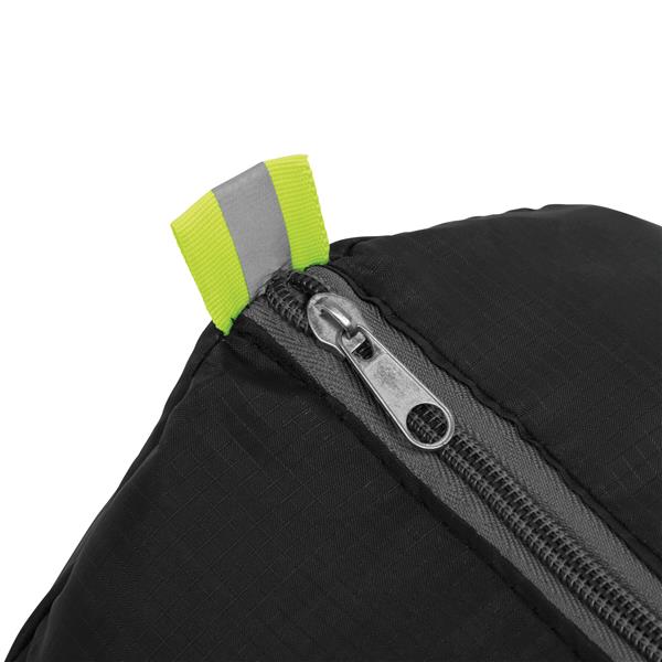 Torba sportowa VOLUNTEER GYM składana dzięki przedniej kieszeni na zamek, komora główna na zamek, 2 odblaskowe metki, 2 siatkowe kieszonki po bokach, 2 długie uchwyty do przenoszenia – po złożeniu do formatu małej torebki można mieć ją zawsze przy sobie.