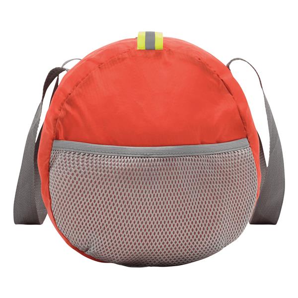 Torba sportowa VOLUNTEER GYM składana dzięki przedniej kieszeni na zamek, komora główna na zamek, 2 odblaskowe metki, 2 siatkowe kieszonki po bokach, 2 długie uchwyty do przenoszenia – po złożeniu do formatu małej torebki można mieć ją zawsze przy sobie.