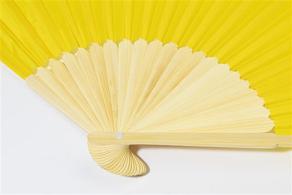 Wachlarz wykonany z poliestru RPET z żebrami bambusowymi.