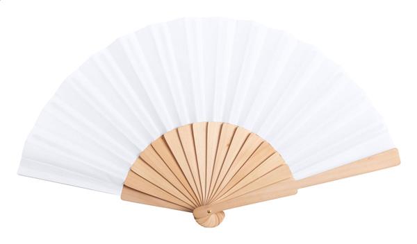 Wachlarz z poliestru RPET z drewnianym ożebrowaniem. W kartoniku.