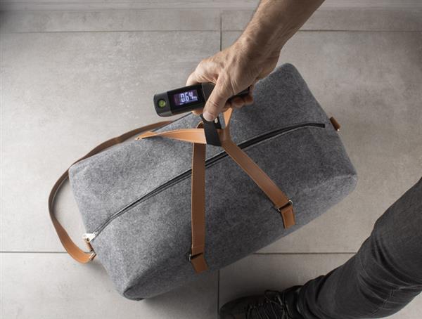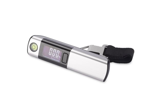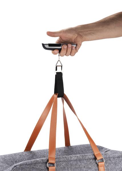 Waga do bagażu TRAVELI z wbudowanym ekranem LED pokazującym wagę w 3 jednostkach: Oz, Lb, Kg. Funkcja tary, wskaźnik naładowania baterii, alarm przy przekroczeniu wagi walizki (20kg), wskaźnik wagi – skala 0-20 kg, dokładność pomiaru mieści się ±3% w granicach błędu. Maksymalne obciążenie: 50 kg. Dodatkowo produkt wyposażony w miarę o długości 1 metra oraz poziomnice. Urządzenie zasilane jest baterią CR2032, która nie jest dołączona do produktu.