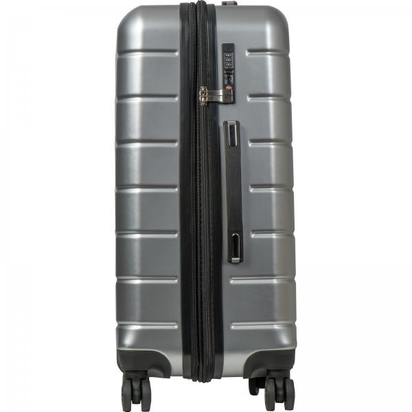 Walizka podręczna z aluminiową teleskopową rączką to eleganckie i funkcjonalne akcesorium podróżne. Walizka posiada osiem obrotowych i wytrzymałych kółek, które ułatwiają poruszanie się po różnych powierzchniach. Dodatkowo zamykana jest na zamek TSA, co stanowi dobre zabezpieczenie na lotnisku. Dzięki zastosowaniu mocnego i trwałego materiału z tworzywa sztucznego, walizka sprawdzi się idealnie podczas każdej podróży. Poza teleskopową rączką posiada również dwa uchwyty ręczne, umożliwiające szybki transport w pionie lub w poziomie.