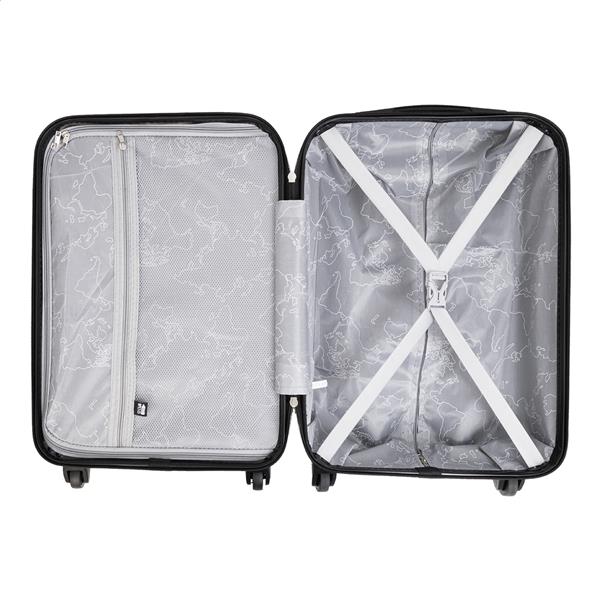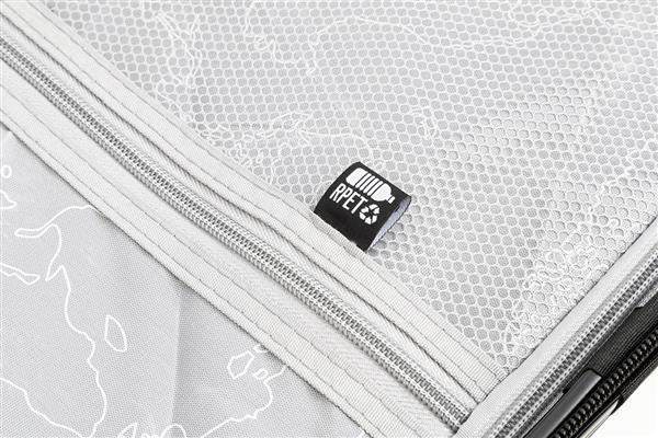 20-calowa, twarda torba na kółkach z RPET z 4 kółkami, teleskopową rączką i zamkiem szyfrowym. Z wewnętrzną podszewką z RPET i elastycznymi paskami mocującymi. Z metalową płytką do grawerowania logo