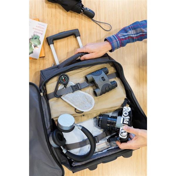 Walizka, składana torba na 2 kółkach, wykonana z poliestru 600D, duża przegroda główna oraz przednia kieszeń zamykana na zamek błyskawiczny, łatwa do złożenia/rozłożenia i przechowywania