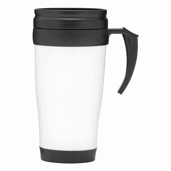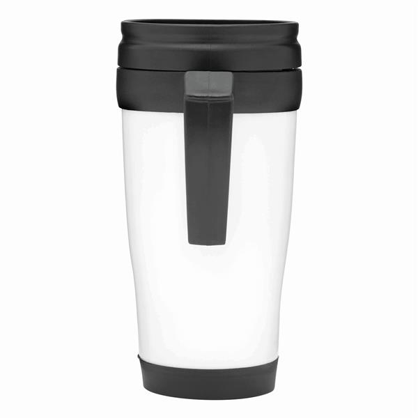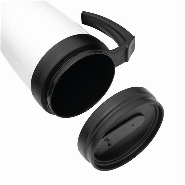 Kubek termoizolacyjny WARM-UP wykonany z plastiku wewnątrz i na zewnątrz. Z gumowaną powierzchnią do trzymania, z plastikowym wieczkiem i otworem do picia w wieczku, 400 ml. Materiał: Plastik Kolor: biały Tagi: Kubki,filiżanki,przybory kuchenne,artykuły gospodarstwa domowego,kubki/garnki termiczne,akcesoria podróżne,kubki do kawy