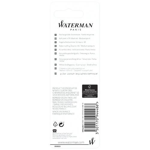 Waterman ballpoint pen refill (black ink)Ballpoint pen refill that provides a smooth writing experience and never dries out. The refill has a writing length of 3500 meter and a nib size of 0.7mm (medium). Packaged on a blister card.Długość: 11,2 cm Materiał: Metal Kolor: Srebrny