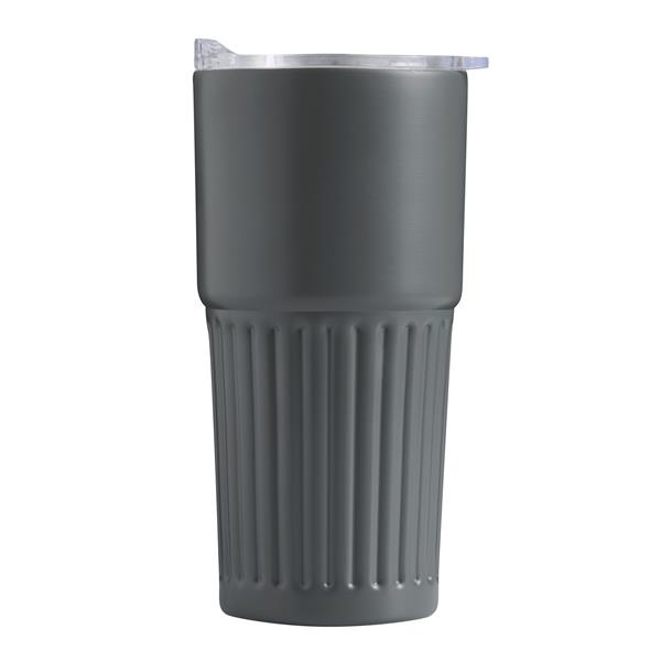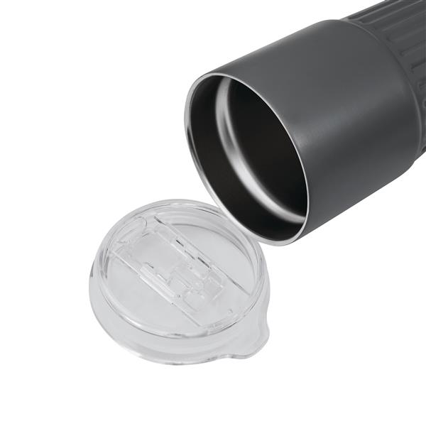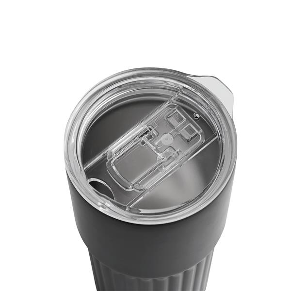 Próżniowy kubek WAVE LINE z podwójną izolacją. Wewnątrz wykonany ze stali nierdzewnej z recyklingu, na zewnątrz ze stali nierdzewnej. Posiada plastikową pokrywkę z silikonowym pierścieniem uszczelniającym i zintegrowanym przesuwanym otworem do picia. O pojemności ok. 600 ml. Utrzymuje ciepło przez ok. 4 godziny i zimno nawet do 8. Zapakowany jest w pudełko.