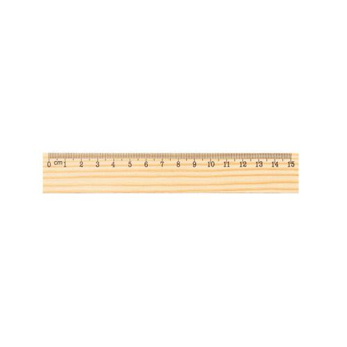 Linijka z drewna sosnowego z podziałką 15 cm nadrukowaną w kolorze czarnym. Ponieważ produkt jest wykonany z naturalnych materiałów, kolor produktu oraz wynik drukowania mogą się różnić w zależności od produktu. 158 x 25 mm