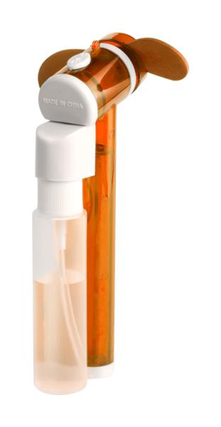 Plastikowy rozpylacz wody z wiatrakiem i pojemnikiem na wodę. Działa na 2 baterie AA, których nie ma w zestawie.