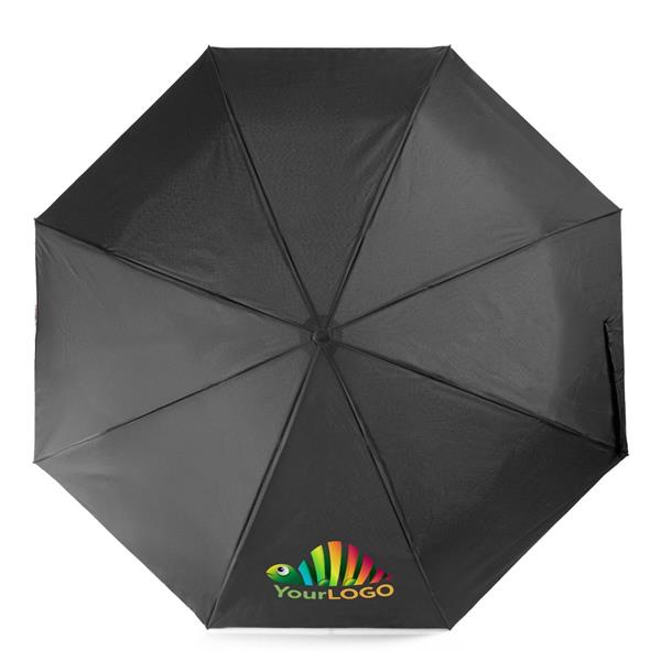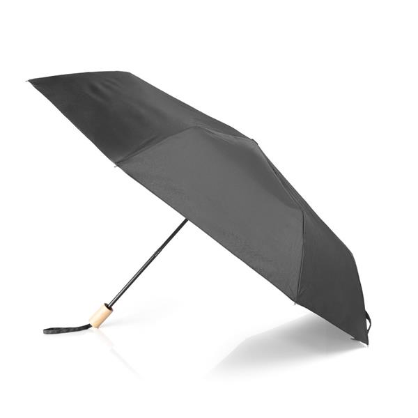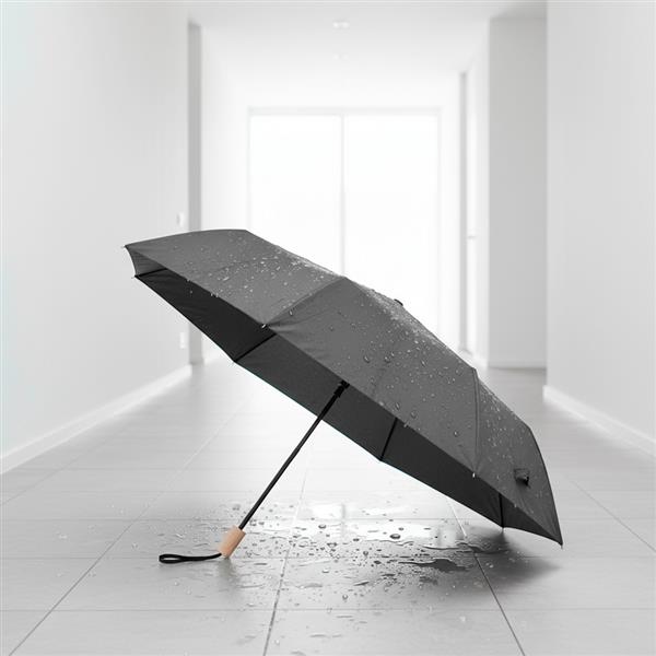 Wiatroodporny parasol RPET, manualny, składany, 8 paneli, drewniana rączka, metalowa rama, zapięcie na rzep, pokrowiec w komplecie
