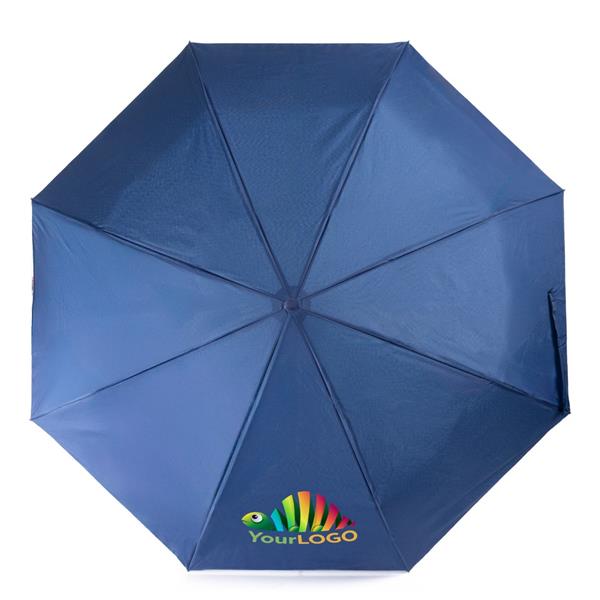 Wiatroodporny parasol RPET, manualny, składany, 8 paneli, drewniana rączka, metalowa rama, zapięcie na rzep, pokrowiec w komplecie