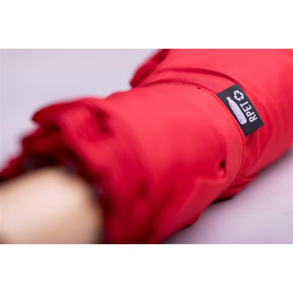Wiatroodporny parasol RPET, manualny, składany, 8 paneli, drewniana rączka, metalowa rama, zapięcie na rzep, pokrowiec w komplecie