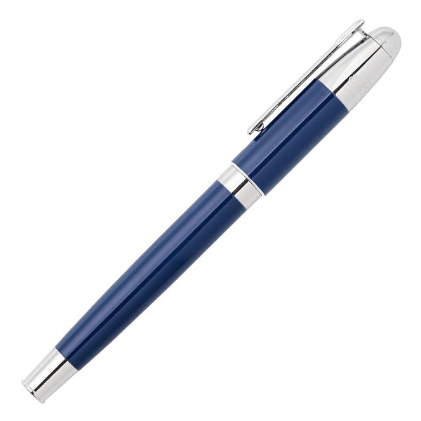 Eleganckie, idealnie wyważone pióro wieczne w wielu wariantach kolorystycznych z subtelnymi chromowanymi akcentami. Pióro posiada wkład piszący na niebiesko. Rozmiar: Dia. 10 / h. 137 mm Kolor: Niebieski
