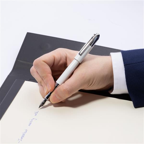 Eleganckie, idealnie wyważone pióro wieczne w wielu wariantach kolorystycznych z subtelnymi chromowanymi akcentami. Pióro posiada wkład piszący na niebiesko.