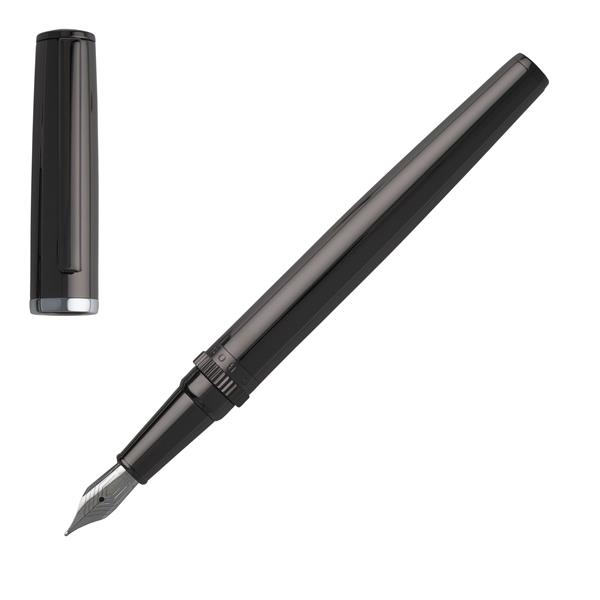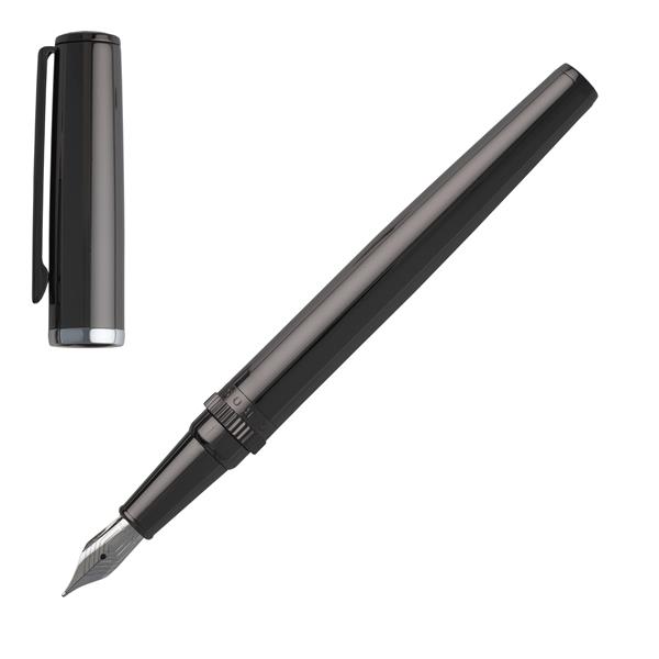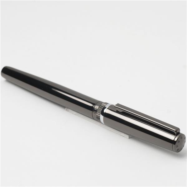 Kolekcja Gear charakteryzuje się ciekawym, dynamicznym kształtem. Oferowane przez nas pióro wieczne to bardziej klasyczna wersja z błyszczącym chromowanym wykończeniem i ciemnym chromowanym pierścieniem jako ozdoba korpusu. Rozmiar: Dia. 13 / h. 140 mm Kolor: Czarny