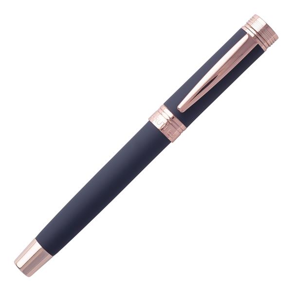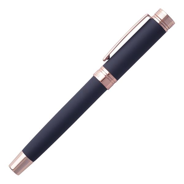 Pióro wieczne Zoom zawiera wkład piszący na niebiesko. To połączenie delikatnego, matowego korpusu w granatowym kolorze z błyszczącym wykończeniem w postaci złoto-różowych detali.