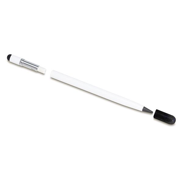 Długowieczny ołówek/długopis z gumką i końcówką do ekranów dotykowych. Długość pisania odpowiada 100 zwykłym ołówkom.