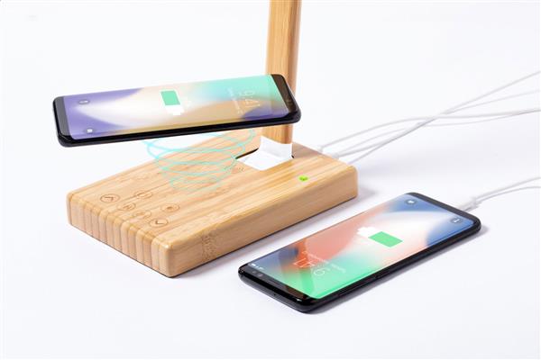 Bambusowa wielofunkcyjna lampka biurkowa z 25 diodami LED, regulowaną jasnością i timerem 1/2 godziny. Z wbudowaną szybką ładowarką indukcyjną (10W) i portem USB do ładowania 2 urządzeń jednocześnie (1 bezprzewodowo i 1 za pomocą kabla). W zestawie kabel USB.