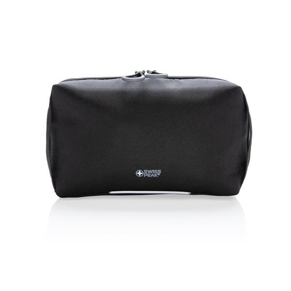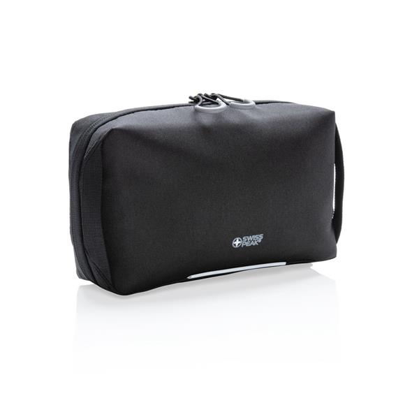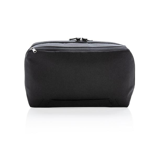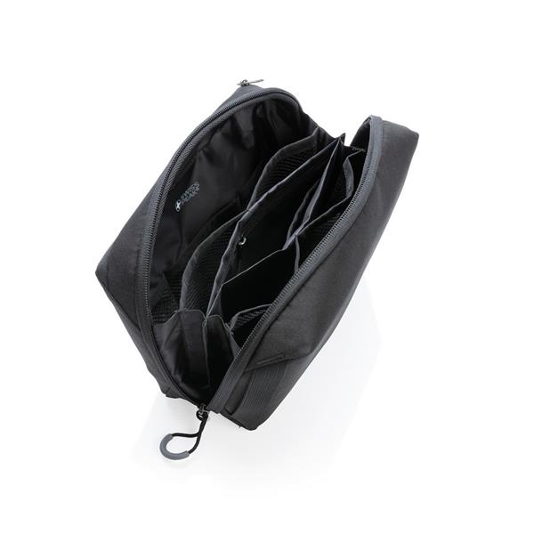 Torba, organizer na elektronikę, przegroda główna zamykana na zamek z miejscem na wysunięcie kabla do ładowania, wewnątrz wiele kieszonek na drobiazgi takie jak kable, power bank, długopisy itp., wykonana z RPET, posiada wbudowany znacznik AWARE™, który potwierdza wykorzystanie materiałów z recyklingu, 2% wpływów z każdego sprzedanego produktu z kolekcji Impact jest przekazywane na rzecz Water.org