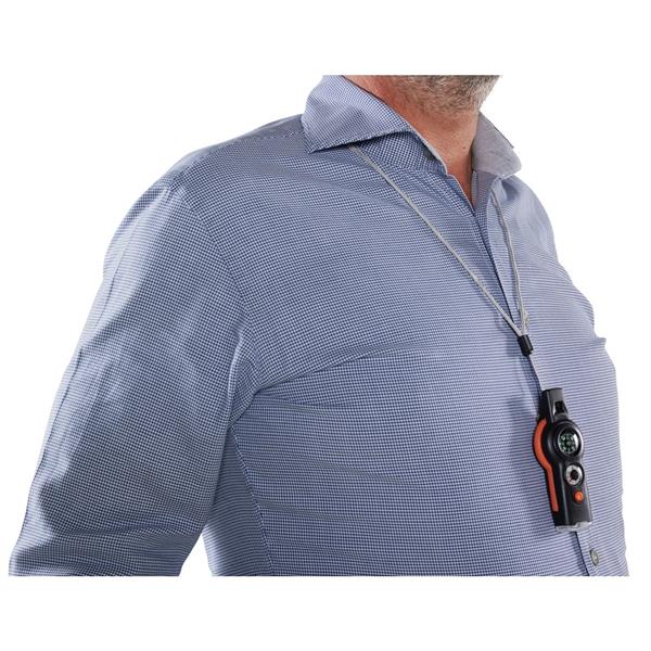 Wielofunkcyjne narzędzie przetrwania, funkcje: gwizdek, kompas, termometr (stopnie F), lampka, lusterko, szkło powiększające i sznurek z zabezpieczeniem