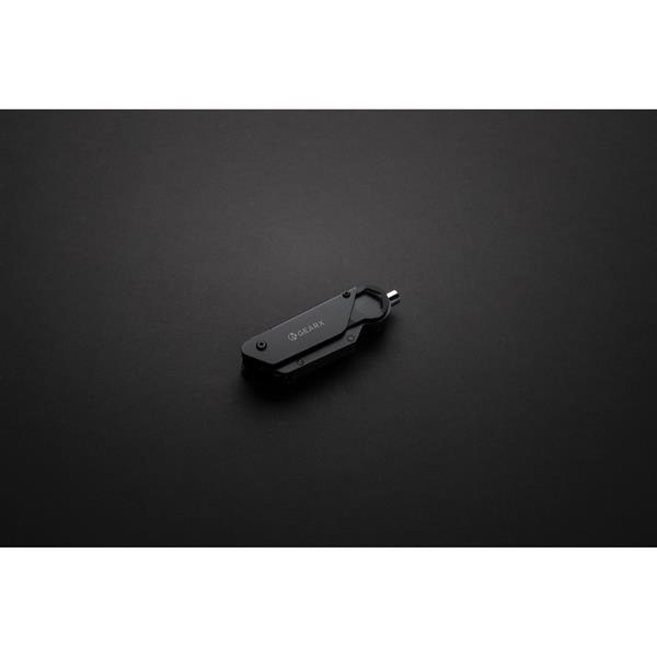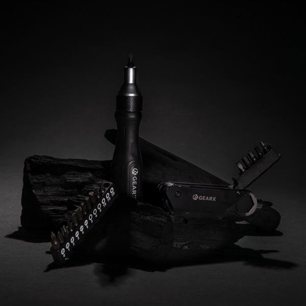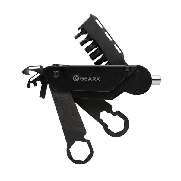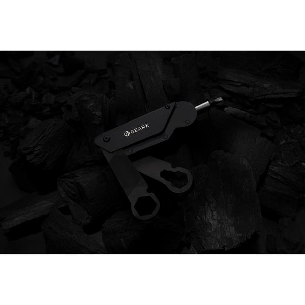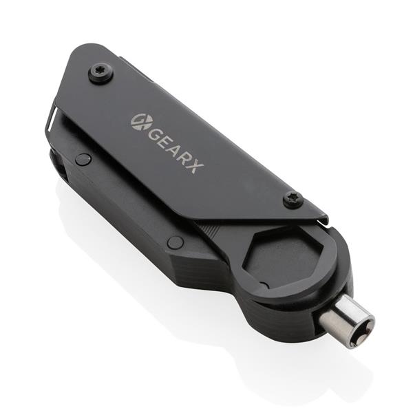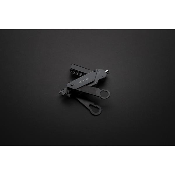 Wielofunkcyjne narzędzie rowerowe, aluminiowa obudowa, narzędzia wykonane ze stali nierdzewnej 420, funkcje: wkrętak, uchwyt do bitów, 6 bitów (S2.5, S2 5mm, S2 4mm, S3 3mm, S2 6mm, S2 PH2), klucz do szprych, otwieracz do kartonów, adapter, wielofunkcyjny klucz 18 mm z blokadą, klucz 5/10/8 mm z blokadą, pilnik, w pudełku podarunkowym, ślad węglowy produktu: 2,83 kg CO2