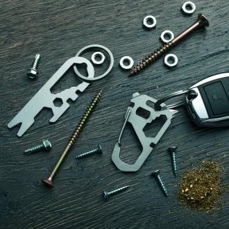 Wielofunkcyjny brelok marki Schwarzwolf zawierający 13 różnych narzędzi, w tym linijkę, magnes, klucz w 6 rozmiarach oraz otwieracz do butelek.