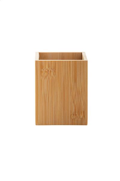 Bambusowy uchwyt na długopis z wielofunkcyjnym zegarem cyfrowym. Funkcje: budzik, kalendarz i termometr. Z baterią guzikową.