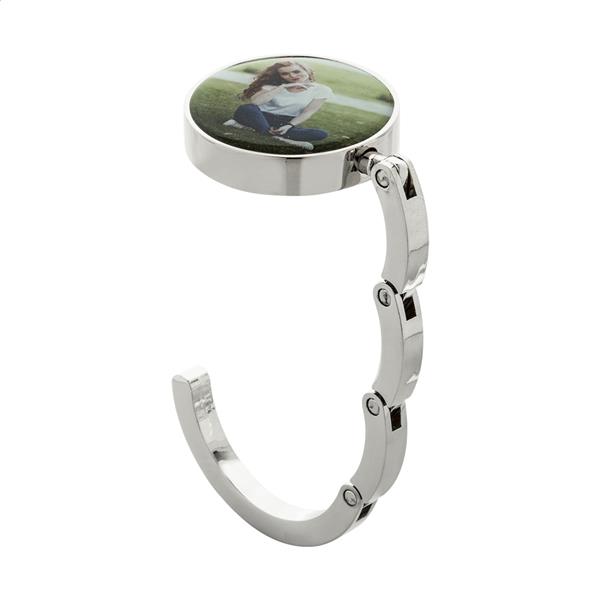 Składany, metalowy wieszak na torbę.