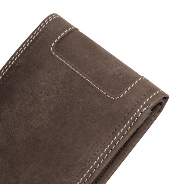 Skórzana portmonetka WILD STYLE I, 6 wsuwanych kieszonek na karty, 2 kieszonki na banknoty, 1 kieszonka na monety z zatrzaskiem, 1 kieszonka z siatki na dokument tożsamości lub prawo jazdy. Materiał: Skóra Kolor: brązowy Tagi: portfele,portmonetki,portmonetki,skóra