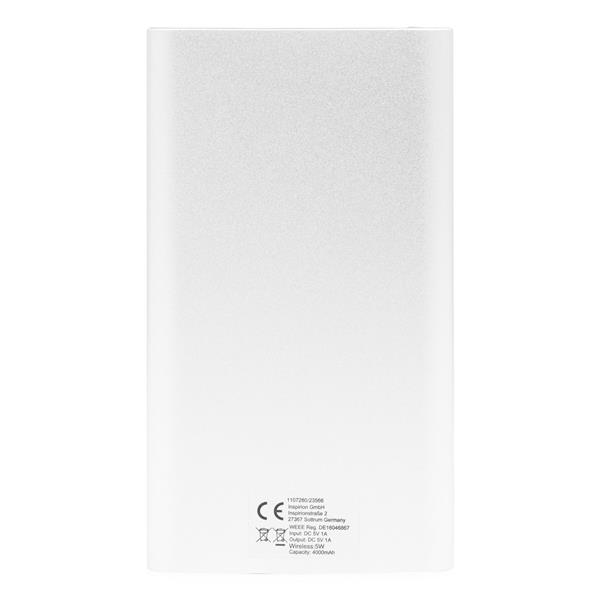 Powerbank WIRELESS POWER to idealne źródło zapasowej energii w podróży, odpowiedni do smartfonów i urządzeń USB, ładowanie bezprzewodowe poprzez przyłożenie podstawy do stacji ładującej (dla urządzeń obsługujących funkcję ładowania indukcyjnego). Zawiera kabel USB TYP C (długość około 30 cm), wskaźnik zasilania LED, włącznik/wyłącznik, moc wejściowa 5V/1A, moc wyjściowa 5V/1A (USB), 5V/1A (bezprzewodowo), pojemność 4000 mAh.