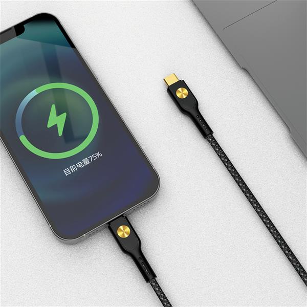 Materiał TPE, wewnętrzny korpus przewodu opleciony + osłona folii aluminiowej + cynkowana blacha + materiał ze stopu cynku oraz odporność na złamanie. Obsługa C-L: 5V-3A, 9V-3A (Apple2.4A, protokół PD).