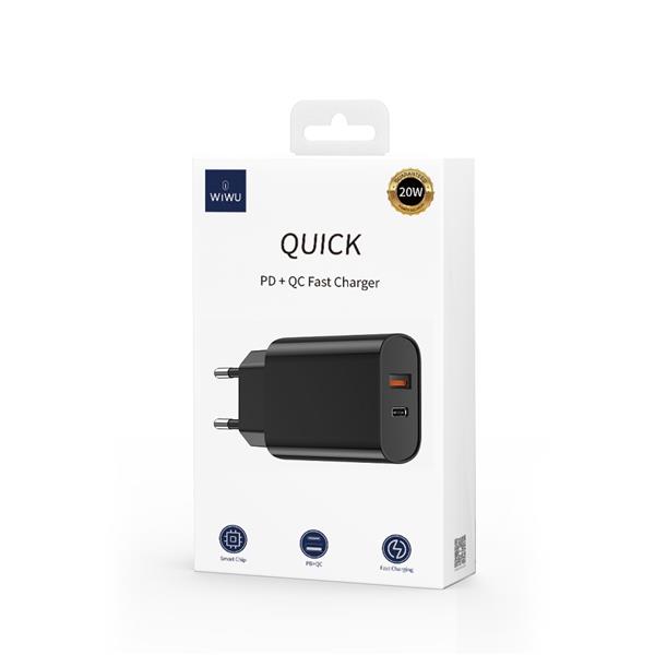 WIWU Wi-002 to zaawansowana ładowarka sieciowa wyposażona w dwa gniazda jedno to USB QC i drugie USB-C PD. Zapewnia wystarczającą ilość energii do szybkiego ładowania nawet największych dostępnych urządzeń mobilnych. Klasyczny wygląd pasuje do wszystkich rodzajów wnętrz a jakość wykonania wskazuje, że jest to urządzenie solidne i trwałe.