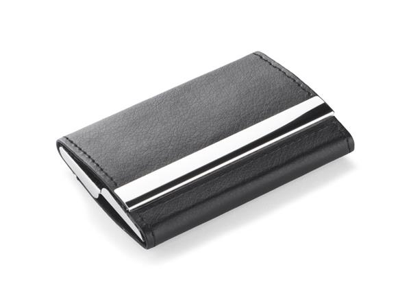 Niezwykle praktyczny wizytownik z materiału skóropodobnego (PU), dzięki któremu można przechowywać zarówno wizytówki swoje, jak i klientów. Wystarczy otworzyć właściwą przegródkę. Wizytownik pomieści 20 wizytówek (10 z kazdej strony). Grawer logo zrobimy na blaszce.
