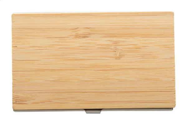 Metalowy wizytownik pokryty bambusem. Description: Metalowy wizytownik pokryty bambusem. Primary Color: naturalny Material 2: Metal Material 1: Bambus Rozmiar: 94×58×9 mm