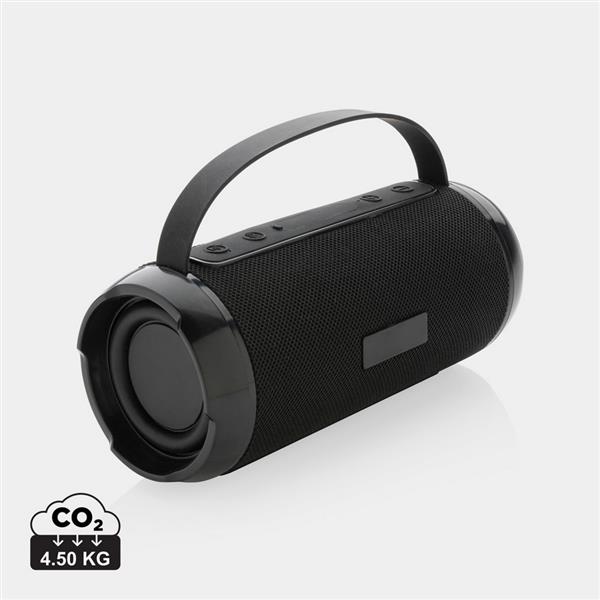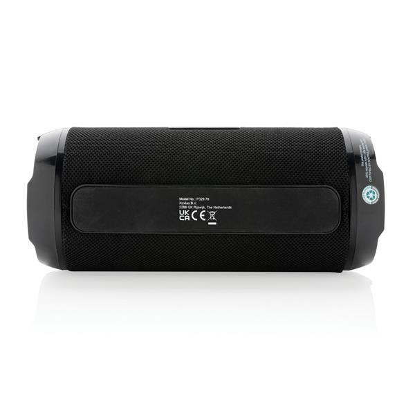 Głośnik bezprzewodowy 6W BT 5.0, wodoodporny IPX4, mikrofon, funkcja odbierania połączeń, wbudowany akumulator o pojemności 1200 mAh umożliwia odtwarzanie do 6 godzin, zasięg do 10m, wykonany z ABS i PET z recyklingu z certyfikatem RCS, całkowita zawartość materiałów z recyklingu obliczona na podstawie wagi całkowitej przedmiotu: 41%, kabel do ładowania z TPE z recyklingu w komplecie, w pudełku z papieru kraftowego