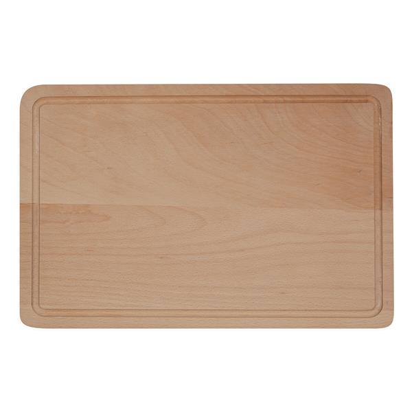 Deska do krojenia WOODEN PREMIUM. Drewno bukowe, z praktycznym wyżłobieniem wzdłuż krawędzi. Wyprodukowana w Europie.