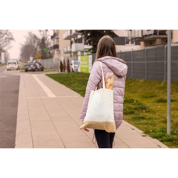 Worek sportowy z certyfikatem Oeko-Tex STANDARD 100 wykonany z bawełny (140g/m2) z jutowym dnem. Świetny jako worek na buty..