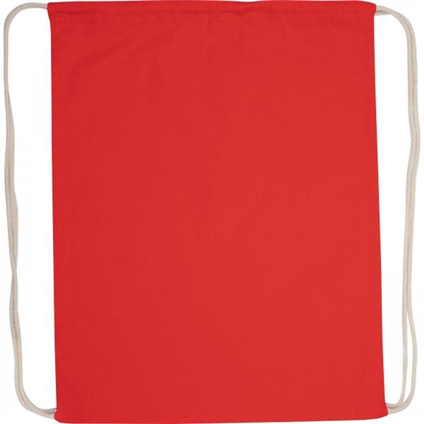 Worek bawełniany o gramaturze 140 g/m2 z certyfikatem OEKO-TEX. Zamykanie za pomocą ściąganych sznurków. Sznurki nie są regulowane.