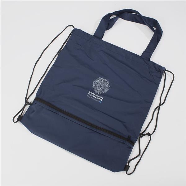 Worek na sznurkach z parasolem RAINY wykonany jest z poliestru RPET, co czyni go bardziej przyjaznym środowisku. Środek worka jest jednokomorowy. Oprócz tradycyjnych sznurków posiada jeszcze rączki o długości 44 cm, dzięki czemu może być używany także jako torba na zakupy. Na dole worka znajduje się zamykana na zamek kieszeń, w której schowany jest dołączony do zestawu parasol, także wykonany z poliestru RPET.