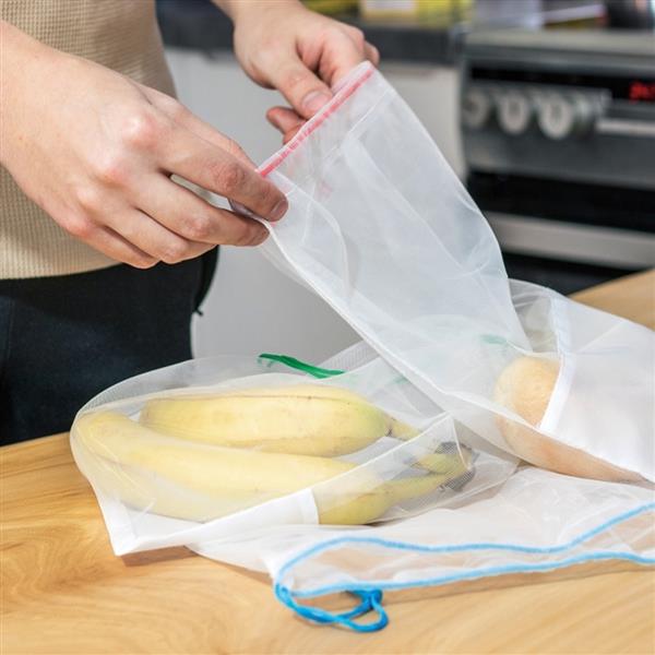Zamykany na sznurek woreczek wielokrotnego użytku wykonany z poliestru PET. Można go prać, jest wytrzymały i znakomicie nadaje się do przechowywania owoców i warzyw.