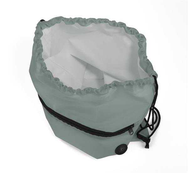 Modny plecak w kształcie worka. W upalne dni można przechowywać w plecaku żywność i napoje i cieszyć się ich świeżością, gdyż główna komora ma izolację termiczną. Plecak wyposażony jest w kieszeń zewnętrzną zamykaną na zamek z wyjściem na słuchawki. Plecak wykonany z poliestru, izolacja termiczna typu PEVA.